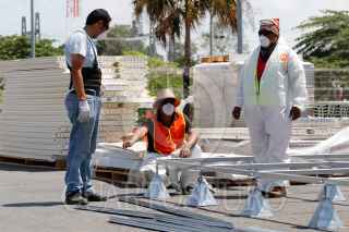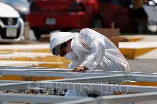 CANCÚN, QUINTANA ROO, 11ABRIL2020.- Los Servicios Estatales de Salud (SESA) iniciaron la instalación, en el estacionamiento del Hospital General de Cancún Jesús Kumate Rodríguez, de la primera de cuatro carpas para la atención de casos de COVID-19 en Cancún, que se aproximan a los 200 casos confirmados en este destino turístico. Autoridades de la dependencia, precisaron que este primer módulo es una especie de filtro para detectar a posibles pacientes positivos de COVID-19, para posteriormente comenzar con lo que serán las áreas “hospitalización”, que tendrán capacidad para atender a por lo menos 250 pacientes. FOTO: ELIZABETH RUIZ /CUARTOSCURO.COM