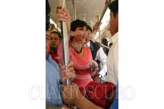 MÈXICO, D.F. 06FEBRERO2006.- Patricia Mercado, candidata del Partido Alternativa Socialdemocrata y Campesina durante su recorrido por el Sistema de transporte colectivo Metro. FOTO.Miriam Sànchez/CUARTOSCURO.COM