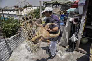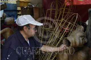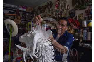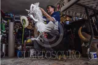 CIUDAD DE MÉXICO, 11ABRIL2020.- Artesanos de la familia Linares que durante generaciones se han dedicado a la fabricación de las tradicionales figuras en la “Quema de Judas”, evento que fue cancelado debido a la suspensión de eventos masivos por la pandemia fase 2 de coronavirus (Covid-19), relataron que sus ventas cayeron significativamente desde el pasado 23 de marzo, cuando las autoridades de la alcaldía les notificaron la suspensión del evento que se realiza en el callejón San Nicolás de la colonia Merced-Balbuena. Desde entonces los modelos previos y pedidos de figuras de judas fueron abandonados. Actualmente se dedican a la fabricación de pedidos especiales, como alebrijes que sus precios van de los 8 mil pesos a los 12 mil pesos. FOTO: MARIO JASSO /CUARTOSCURO.COM
