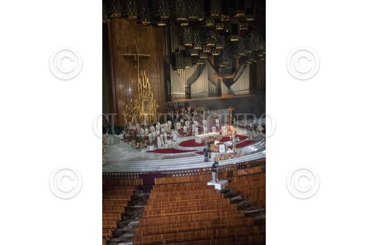 CIUDAD DE MEXICO. 12ABRIL2020.-El arzobispo primado de México, Carlos Aguiar Retes, oficio la misa en la Basílica de Guadalupe, por el domingo de pascua, dijo a sus fieles rezar por que pronto termine esta pandemia de Covid 19. FOTO: VICTORIA VALTIERRA/CUARTOSCURO.COM