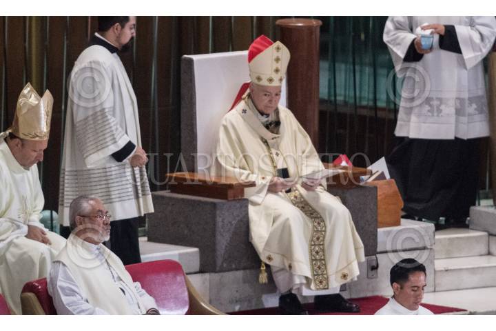 CIUDAD DE MEXICO. 12ABRIL2020.-El arzobispo primado de México, Carlos Aguiar Retes, oficio la misa en la Basílica de Guadalupe, por el domingo de pascua, dijo a sus fieles rezar por que pronto termine esta pandemia de Covid 19. FOTO: VICTORIA VALTIERRA/CUARTOSCURO.COM