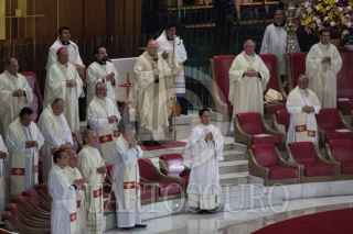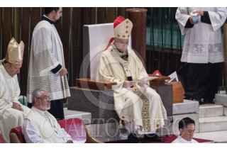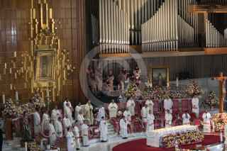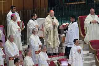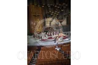 CIUDAD DE MEXICO. 12ABRIL2020.-El arzobispo primado de México, Carlos Aguiar Retes, oficio la misa en la Basílica de Guadalupe, por el domingo de pascua, dijo a sus fieles rezar por que pronto termine esta pandemia de Covid 19. FOTO: VICTORIA VALTIERRA/CUARTOSCURO.COM