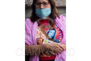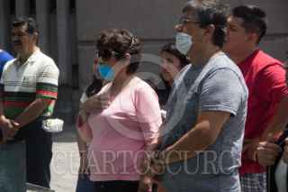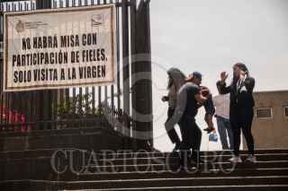 CIUDAD DE MEXICO. 12ABRIL2020.-Fieles católicos acudieron a la basílica a escuchar misa en las afueras del recinto Guadalupano. FOTO: VICTORIA VALTIERRA/CUARTOSCURO.COM