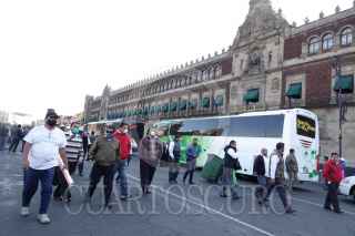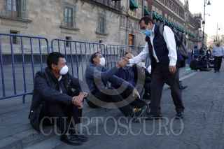 CIUDAD DE MÉXICO, 13ABRIL2020.- Prestadores de servicios turísticos se manifestaron afuera del Palacio Nacional para pedir apoyos económicos al gobierno, ya que el sector salud a sido uno de los más golpeados por las restricciones del Covid-19, los inconformes bloquearon un par de horas la plancha del zócalo. FOTO: MOISÉS PABLO/CUARTOSCURO.COM