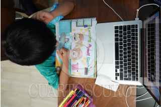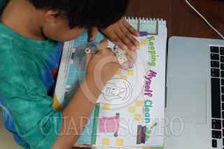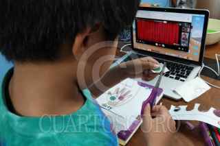 CIUDAD DE MÉXICO, 13ABRIL2020.- Niños de educación básica toman clases a distancia a través de aplicaciones en Internet con los que pueden compartir el conocimiento con sus maestros y compañeros, un ejercicio que le permite regresar un poco a su normalidad. Millones de niños han visto interrumpida su actividades académicas en las aulas escolares por la restricciones sanitarias decretadas por la pandemia de Covid-19, en México la fecha tentativa para levantar la cuarentena es hasta el 30 de abril, sin embargo, las autoridades han vislumbrado que esta se podría alargar. FOTO: MOISÉS PABLO/CUARTOSCURO.COM