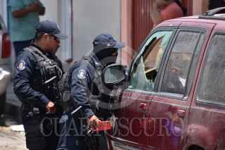 CHILPANCINGO, GUERRERO, 13ABRIL2020.- Un objeto explosivo detonó en la Colonia Los Ángeles, policías del estado de Guerrero, llegaron a investigar y revisar la zona de los hechos, los cuales ocurrieron en la calle Prolongación Ignacio Allende, de la ciudad de Chilpancingo. Posteriormente, las autoridades señalaron que este artefacto había ocasionado daños en tres vehículos y en la fachada de una vivienda cercana. FOTO: DASSAEV TÉLLEZ ADAME/CUARTOSCURO.COM