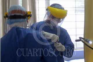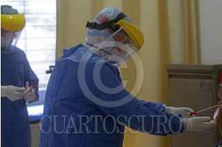 GUADALAJARA, JALISCO, 14ABRIL2020.- La Secretaria de Salud Jalisco (SSJ) creo cuatros módulos fijos en Guadalajara, Zapopan, Ciudad Guzmán y Puerto Vallarta y tres mas itinerantes para atender a pacientes sospechosos de contagio por Coronavirus (Covid-19). En la imagen el modulo ubicado en la colonia Ciudad Granja de Zapopan, tiene la capacidad de realizar 90 pruebas PCR, aunque actualmente atiende de 25 a 30 casos diarios. FOTO: FERNANDO CARRANZA GARCIA / CUARTOSCURO.COM