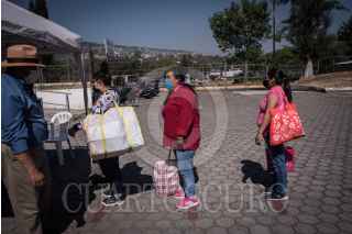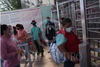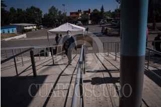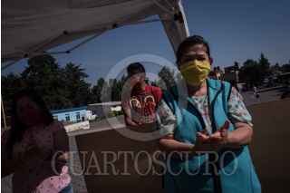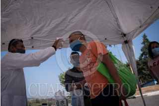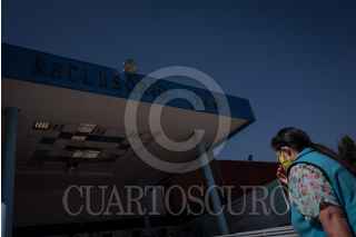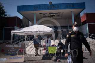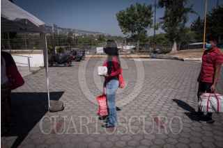 CIUDAD DE MÉXICO, 13ABRIL2020.- Relativos a internos del Reclusorio Sur, ubicado en San Mateo Xalpa, Xochimilco, atraviesan un filtro en donde se les toma la temperatura y aplica gel antibacterial en las manos, antes de poder ingresar a visitar a sus familiares. Lo anterior como parte del protocolo de salud ante la emergencia sanitaria declarada por el Gobienro de la Ciudad al incrementarse, como aseguran, los brotes de contagio del Covid-19. FOTO: PEDRO ANZA/CUARTOSCURO.COM