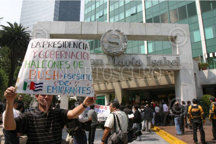 MEXICO, D.F. 07FEBRERO2006.- Un grupo personas clausuraron de forma simbólica el Hotel Sheraton Ciudad de México, en protesta por la expulsión de la delegación cubana. FOTO: Pedro Marrufo/CUARTOSCURO.COM