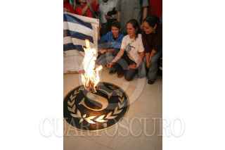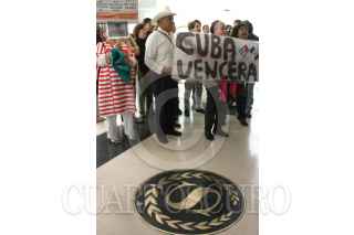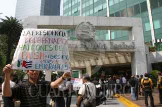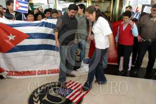 MEXICO, D.F. 07FEBRERO2006.- Un grupo personas clausuraron de forma simbólica el Hotel Sheraton Ciudad de México, en protesta por la expulsión de la delegación cubana. FOTO: Pedro Marrufo/CUARTOSCURO.COM