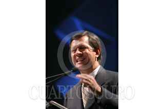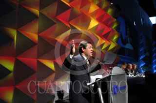 MEXICO, D.F., 07FEBRERO2006.- Roberto Campa, candidato a la presidencia de la República por el Partido Nueva Alianza, asistió a una reunión con los consejeros nacionales del BBVA-Bancomer en la Expo-Bancomer. FOTO: Moisés Pablo/CUARTOSCURO.COM