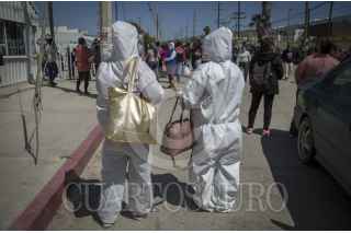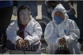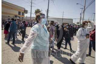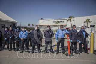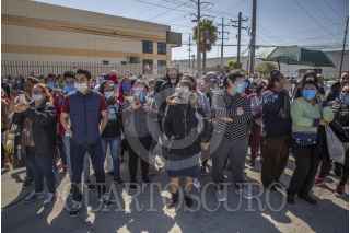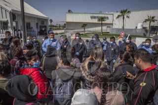 TIJUANA, BAJA CALIFORNIA, 14ABRIL2020.- Trabajadores de la empresa Plantronics ubicada en el parque industrial Tijuana se manifestaron a las afueras de la maquiladora por las jornadas laborales que están realizando sin tomar medidas de sana distancia, además exigieron a los directivos que suspendan operaciones por los casos de Covit-19 que aseguran han padecido algunos de sus compañeros. Autoridades del Estado informaron que realizarán las diligencias correspondientes para solucionar el problema. FOTO: OMAR MARTÍNEZ /CUARTOSCURO.COM