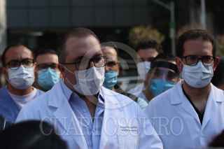 CIUDAD DE MÉXICO, 15ABRIL2020.- Personal del Hospital 20 de Noviembre realizaron un bloqueo sobre avenida Félix Cuevas, alcaldía de Benito Juárez, para exigir insumos ante el incremento de pacientes con Covid-19 en la institución. FOTO: GALO CAÑAS /CUARTOSCURO.COM