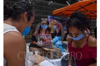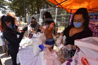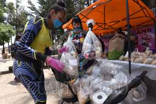 Integrantes del Colectivo Trans Estado de México y Alrededores se reunieron para armar despensas en el Parque 18 de Marzo, las cuales van a entregar este fin de semana de casa en casa a población vulnerable; entregarán productos de primera necesidad a 70 familias cada semana en la zona de Toluca y algunos municipios cercanos hasta que se termine la contingencia por COVID-19. FOTO: CRISANTA ESPINOSA AGUILAR /CUARTOSCURO.COM