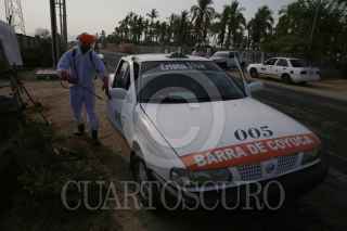 BARRA DE COYUCA, GUERRERO, 15ABRIL2020.- Pobladores de la comunidad de Barra de Coyuca instalaron un retén en la entrada de esta comunidad ubicada en la Costa Grande de Guerrero para evitar el contagio de Covid-19, a la comunidad solo pueden entrar personas que viven en el pueblo, y todas las personas que no vivan dentro de la comunidad tienen prohibida la entrada, la Barra de Coyuca es una comunidad en donde los pobladores se dedican totalmente al turismo debido a contar con playa y la laguna de Coyuca, en donde cada fin de semana y temporadas vacacionales llegan turistas a disfrutar las bellezas naturales del lugar. FOTO: CARLOS ALBERTO CARBAJAL/CUARTOSCURO.COM