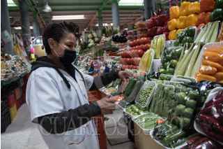 CIUDAD DE MÉXICO, 15ABRIL2020.- Poca asistencia de personas en los mercados de la capital como: San Juan, Merced y Jamaica, en donde los asistentes utilizan las medidas preventivas para combatir la propagación del coronavirus (Covid-19). De acuerdo a las acciones del gobierno de la capital, sólo están autorizados los locales que se dedican a la venta de alimentos. FOTO: MARIO JASSO /CUARTOSCURO.COM