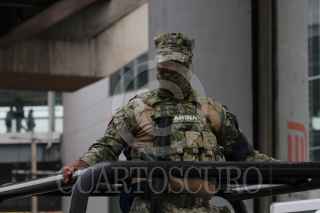 CIUDAD DE MÉXICO, 15ABRIL2020.- Integrantes de la Secretaría de la Marina transitaron por avenida Tláhuac, a la altura del Hospital de Especialidades Belisiario Domínguez, alcaldía Tláhuac. FOTO: GRACIELA LÓPEZ /CUARTOSCURO.COM