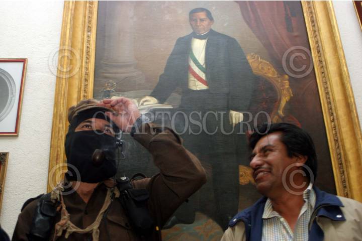 GUELATAO, OAXACA 07FEBRERO2006.- El Sub Comandante Insurgentes Marcos, Delegado Zero para La Otra Campaña del EZLN, visita al Ayuntamiento de Guelatao lugar donde nació el ex presidente de Mexico Benito Juarez. FOTO: Moysés Zuñiga Santiago/CUARTOSCURO.COM