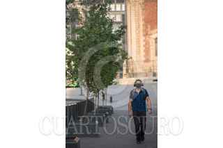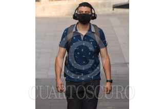 CIUDAD DE MEXICO. 16ABRIL2020.- Jóven camina en la calle de Moneda, en el centro histórico, que luce vacío. FOTO: VICTORIA VALTIERRA/CUARTOSCURO.COM