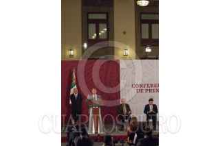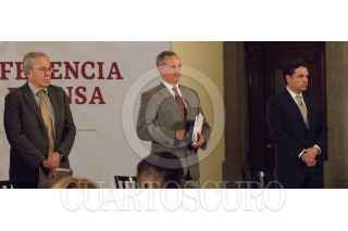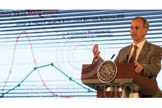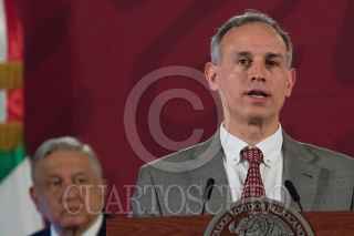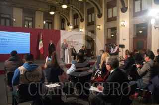 CIUDAD DE MEXICO. 16ABRIL2020.- El Presidente Andrés Manuel López Obrador, estuvo acompañado en la tradicional conferencia de las mañanas por Jorge Alcocer, titular de Salud, Hugo López-Gatell y Zoé Robledo, en el salon Tesorería del Palacio Nacional. FOTO: VICTORIA VALTIERRA/CUARTOSCURO.COM