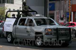 CIUDAD DE MÉXICO, 16ABRIL2020.- Elementos de las Fuerzas Federales transitaron por avenida Tláhuac, a la altura del Hosptial de Especialidades Belisiario Domínguez. Desde ayer, se ha reforzado la seguridad en diferentes hospitales que reciben a pacientes con Covid-19. FOTO: GRACIELA LÓPEZ /CUARTOSCURO.COM