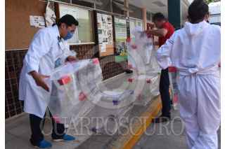 CANCÚN, QUINTANA ROO, 16ABRIL2020.- CancUnidos es un grupo de amigos con el objetivo de apoyar a los profesionales de la salud en la entidad. A través de donativos de la comunidad, se consiguieron recursos para ayudar a los médicos, enfermeras, camilleros, personal de servicio social, vigilancia y de limpieza de los hospitales de ese destino turístico. A quiene se les hizo entrega de material especializado como cápsulas transportadoras de enfermos y cajas de entubación. Mientras que a los hospitales del Seguro Social de la 510, IMSS COBA y al Hospital General “Jesús Kumate" se donaron más de 200 caretas, 22 cápsulas transportadoras y 50 cajas de entubación. Hasta el día de hoy se han registrado 279 positivos y 28 defunciones en el estado. FOTO: ELIZABETH RUIZ /CUARTOSCURO.COM
