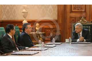 CIUDAD DE MÉXICO, 16ABRIL2020.- Andrés Manuel López Obrador, Presidente de México, se reunió con Alejandro Díaz de León, gobernador del Banco de México, se reunieron en Palacio Nacional, en donde la Jefe del Ejecutivo reiteró su respeto a la autonomía de Banxico. FOTO: PRESIDENCIA/CUARTOSCURO.COM
