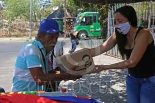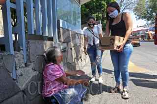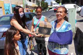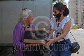 GUADALAJARA, JALISCO. 16ABRIL2020.- A causa de la cuarentena que se vive por la contingencia sanitaria del Coronavirus (Covid-19), personal del la marca “El Chapo 701”, a través de la fundación Alejandrina Guzmán, hija del narcotraficante Joaquín El Chapo Guzmán, iniciaron una campaña como parte de acciones sociales de la fundación entregando despensas a personas de la tercera edad en condiciones vulnerables. FOTO: FERNANDO CARRANZA GARCIA CUARTOSCURO.COM
