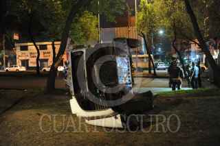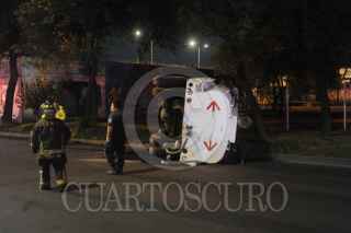 Ciudad de México, 17 abril 2020. Una pipa de agua volcó luego de ser impactada por un tráiler, en carriles centrales de Zaragoza a la altura de la calle 17 de la colonia Valentín Gómez Farías, en alcaldía de Venustiano Carranza. El camión responsable logro darse a la fuga. Foto: Luis Carbayo/cuartoscuro.com