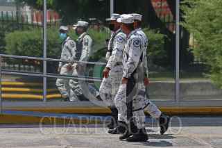 GUADALAJARA, JALISCO, 17ABRIL2020.- Personal de la Guardia Nacional resguardan las instalaciones del Centro Medico de Occidente, esto con el objetivo de brindar seguridad al personal medico, insumos e instalaciones durante la pandemia sanitaria del Coronavirus (Covid-19). FOTO: FERNANDO CARRANZA GARCIA / CUARTOSCURO.COM