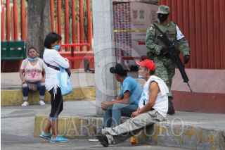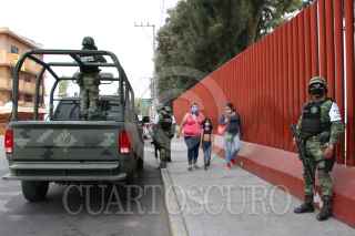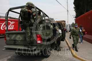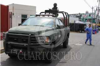 CIUDAD DE MEXICO 17ABRIL2020.- Elementos del Ejército Nacional, durante el recorrido de seguridad en la periferia del Hospital General de Tláhuac, el cual recibe pacientes contagiados por el virus COVID-19. FOTO: ROGELIO MORALES /CUARTOSCURO. COM