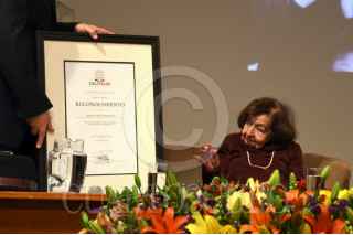 CIUDAD DE MÉXICO, 18ABRIL2020.- La escritora Zacatecana Amparo Dávila, falleció el día de hoy a sus 92 años. En la imagen aparece durante la plática que en la sala Manuel M. Ponce del Palacio de Bellas Artes, como parte del ciclo Mujeres de Letras que organizó el INBA en 2017. FOTO: DIEGO SIMÓN SÁNCHEZ / ARCHIVO /CUARTOSCURO.COM