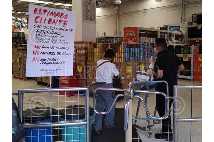 CIUDAD DE MÉXICO, 18ABRIL2020.- Como parte medidas de prevención durante la alerta sanitaria Fase 2 por coronavirus (covid-19), supermercados La ciudad continúan aplicando filas con sana distancia, ingresos de una persona por entidad y operativos de seguridad en el exterior por parte de elementos de la Secretaría de Seguridad Ciudadana (SSC). FOTO: MARIO JASSO /CUARTOSCURO.COM