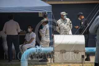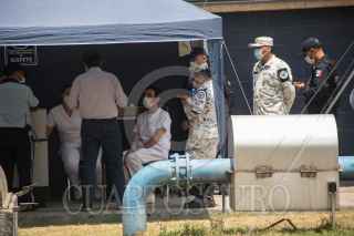 CIUDAD DE MEXICO. 19ABRIL2020.- Elementos de la Guardia Nacional y de la ex Policía Federal se encuentran apoyando al IMSS en la realización de pruebas y en su caso auxilio para pacientes del Coronavirus, en el Centro Médico Nacional Siglo XXI. Pacientes acuden a sus citas médicas a este nosocomio. Y en el área de urgencias del Hospital General, de la Colonia Doctores se encuentran con las pruebas de Covid 19. FOTO: VICTORIA VALTIERRA/CUARTOSCURO.COM