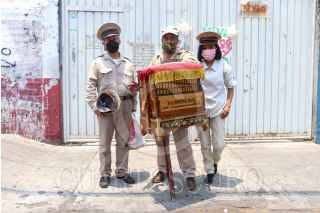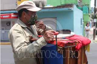 CIUDAD DE MÉXICO, 19ABRIL2020.- Un grupo de organilleros toca melodías para ganarse unas monedas en la calle de Puente Titla, alcaldía Iztapalapa. FOTO: GRACIELA LÓPEZ /CUARTOSCURO.COM