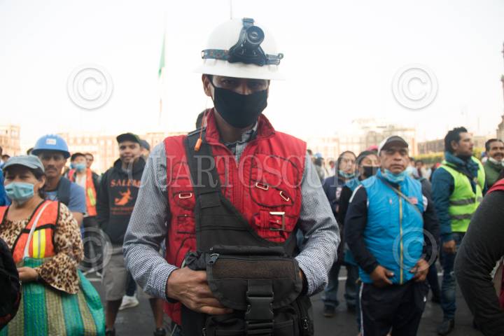 CIUDAD DE MEXICO. 20ABRIL2020.- Trabajadores de la construcción así como comerciantes y acudieron a protestar al Palacio Nacional, para exigir apoyos económicos al Presidente Andrés Manuel López Obrador. FOTO: VICTORIA VALTIERRA/CUARTOSCURO.COM
