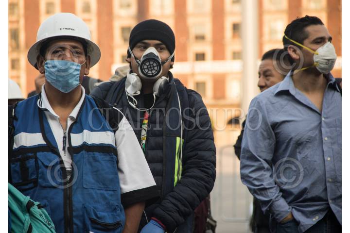 CIUDAD DE MEXICO. 20ABRIL2020.- Trabajadores de la construcción así como comerciantes y acudieron a protestar al Palacio Nacional, para exigir apoyos económicos al Presidente Andrés Manuel López Obrador. FOTO: VICTORIA VALTIERRA/CUARTOSCURO.COM
