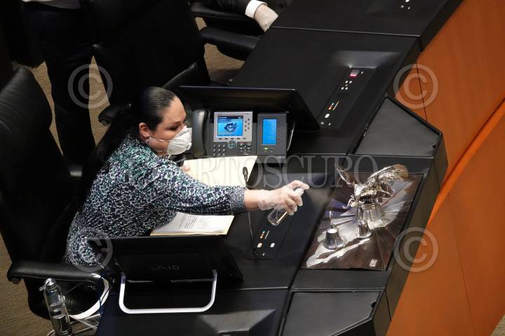 CIUDAD DE MÉXICO, 20ABRIL2020.- Senadores sesiona para discutir y aprobar la Ley de Amnistía. Los parlamentarios acudieron con cubrebocas, caretas y toallitas sanitarias para tomar sus previsiones ante la pandemia de Covid-19. FOTO: MOISÉS PABLO/CUARTOSCURO.COM