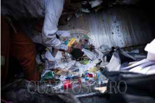 CIUDAD DE MÉXICO, 20ABRIL2020.- A pesar de la que Secretaría de Medio Ambiente y la Secretaría de Salud, pidieron a la población separar sus residuos en orgánicos, inorgánicos reciclables, inorgánicos no reciclables y sanitarios para, aseguran, evitar la propagación del Covid-19 y proteger a su vez a los trabajadores de limpia, en los camiones de basura que transitan las calles de la ciudad pueden encontrarse cubrebocas y guantes por montón. FOTO: PEDRO ANZA /CUARTOSCURO.COM