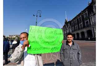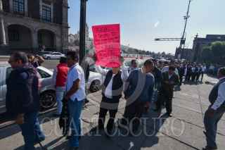 Operadores de transporte turístico de Atlacomulco, Villa Victoria, Lerma, Toluca y Chalma se reunieron frente a Palacio de Gobierno para pedir apoyo económico ante la contingencia por COVID-19, al instalarse la cuarentena dejaron de tener salidas al cancelarse cualquier tipo de evento que reuniera a muchas personas, lo que ha mermado su economía y los ha llevado a endeudarse. FOTO: CRISANTA ESPINOSA AGUILAR /CUARTOSCURO.COM