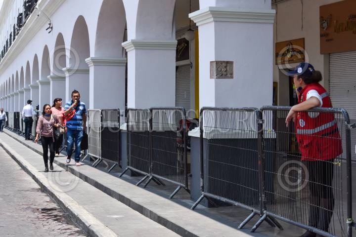 Como una medida preventiva fueron cerrados los Portales de Toluca de manera temporal, para evitar contagios por COVID-19, el Ayuntamiento de Toluca colocó vallas metálicas para impedir el acceso y elementos de Bomberos, Protección Civil y Policías de Toluca para evitar el paso de la población. FOTO: CRISANTA ESPINOSA AGUILAR /CUARTOSCURO.COM