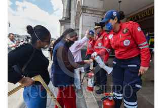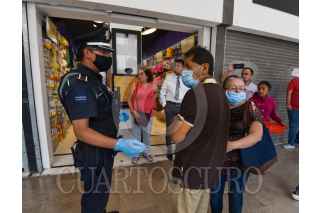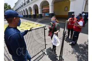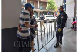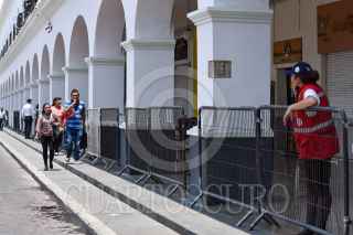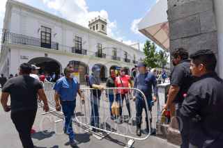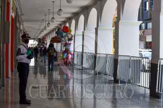 Como una medida preventiva fueron cerrados los Portales de Toluca de manera temporal, para evitar contagios por COVID-19, el Ayuntamiento de Toluca colocó vallas metálicas para impedir el acceso y elementos de Bomberos, Protección Civil y Policías de Toluca para evitar el paso de la población. FOTO: CRISANTA ESPINOSA AGUILAR /CUARTOSCURO.COM