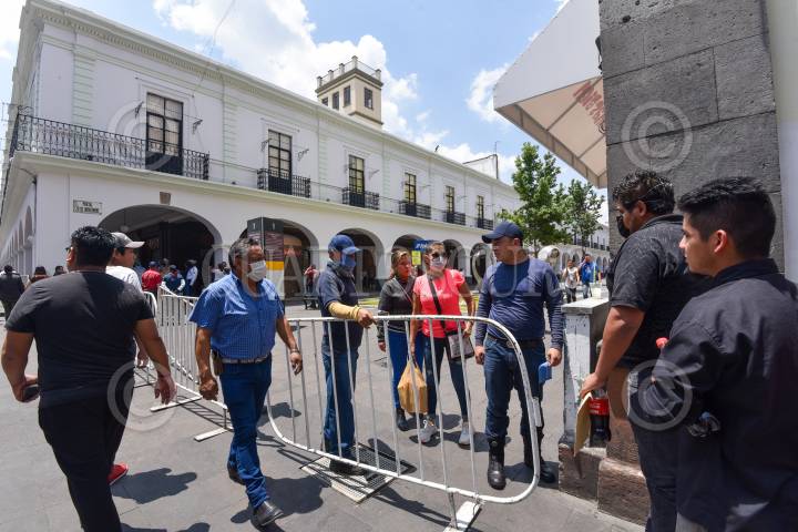 Como una medida preventiva fueron cerrados los Portales de Toluca de manera temporal, para evitar contagios por COVID-19, el Ayuntamiento de Toluca colocó vallas metálicas para impedir el acceso y elementos de Bomberos, Protección Civil y Policías de Toluca para evitar el paso de la población. FOTO: CRISANTA ESPINOSA AGUILAR /CUARTOSCURO.COM