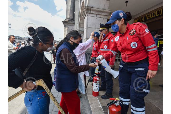 Como una medida preventiva fueron cerrados los Portales de Toluca de manera temporal, para evitar contagios por COVID-19, el Ayuntamiento de Toluca colocó vallas metálicas para impedir el acceso y elementos de Bomberos, Protección Civil y Policías de Toluca para evitar el paso de la población. FOTO: CRISANTA ESPINOSA AGUILAR /CUARTOSCURO.COM