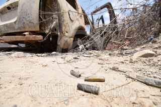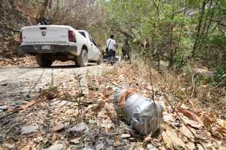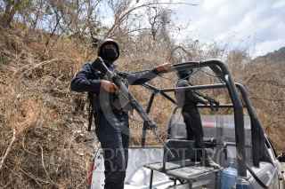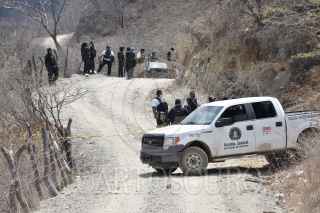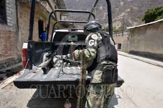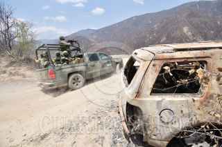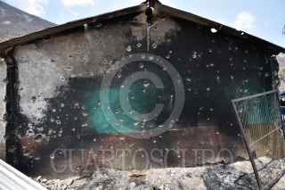 LEONARDO BRAVO, GUERRERO, 20ABRIL2020.- Al menos 13 cuerpos, miles de casquillos percutidos, explosivos activos en los caminos de terracería, carros calcinados, casas balaceadas y armamento asegurado, es el saldo que dejaron 2 días de enfrentamientos armados en la comunidad de El Naranjo del municipio de Leonardo Bravo, en la sierra del estado de Guerrero. Los hechos ocurrieron en el transcurso del fin de semana, este domingo, los trabajadores del Servicio Médico Forense (SEMEFO) hicieron el levantamiento de 8 cuerpos, de los cuales 2 estaban calcinados. Para este lunes, otros 5 cuerpos fueron localizados en un barranco, a unos kilómetros de la comunidad. La Secretaría de Seguridad Pública del estado de Guerrero (SSPGro) comunicó que, luego de los hechos, los agentes de esta corporación aseguraron 6 armas de fuego largas, 16 cargadores, 492 cartuchos útiles de diversos calibres, 4 chalecos tácticos y 6 placas balísticas. FOTO: DASSAEV TÉLLEZ ADAME/CUARTOSCURO.COM