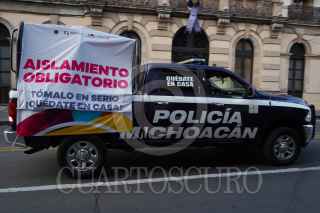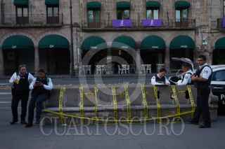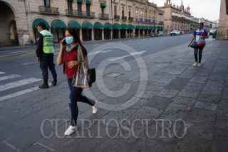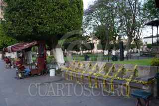 MORELIA, MICHOACÁN. 20ABRIL2020. Hoy se decretó en Michoacan el confinamiento obligatorio a causa de la pandemia originada por el Coronavirus. El gobernador hizo el anunció y en la calle, parece que es el “día de prueba”. En las plazas públicas del Centro de Morelia, colocaron cinta amarilla en algunas bancas para evitar que se sienten. FOTO: JUAN JOSÉ ESTRADA SERAFÍN /CUARTOSCURO.COM