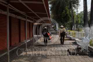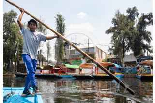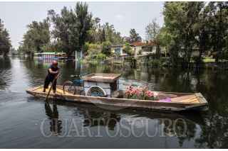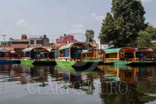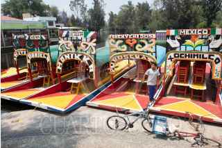 CIUDAD DE MÉXICO, 21ABRIL2020.- Ante el cierre de los embarcaderos de Xochimilco por la declaratoria de emergencia sanitaria, toda actividad turística y de vendimia en el embarcadero se detuvo. Preocupando a los habitantes que subsisten del turismo que llega al lugar. En el canal Nativitas se puede observar estacionadas las coloridas trajineras y solo vecinos trasladándose en pequeñas canoas entre el agua en la que se observa menos basura y luce menos turbia aunque conserva su color verdoso por el lirio acuático, planta característica de los canales. FOTO: ANDREA MURCIA /CUARTOSCURO.COM