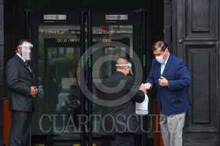 Con medidas de seguridad diputados de la LX Legislatura local llevaron a cabo la sesión solemne de clausura del Segundo Período Ordinario del segundo año de ejercicio constitucional, la mayoría acudió con cubrebocas y se les dio un kit de el cual incluía una protector facial, gel antibacterial y un cubrebocas. FOTO: CRISANTA ESPINOSA AGUILAR /CUARTOSCURO.COM