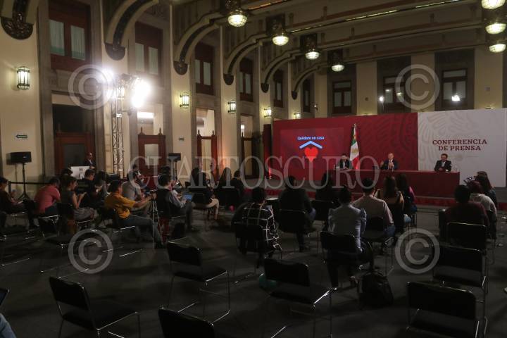 CIUDAD DE MÉXICO, 21ABRIL2020.- José Luis Alomía, director General de Epidemiología; Hugo López-Gatell, subsecretario de la Secretaría de Salud, y Ricardo Cortés Alcalá, director General de Promoción de la Salud, encabezaron el informe diario sobre el avance de la pandemia del Coronavirus COVID-19. Se informaron 9501 confirmados acumulados, 3185 confirmados activos y 857 defunciones. El acto se realizó en Palacio Nacional. FOTO: GRACIELA LÓPEZ /CUARTOSCURO.COM