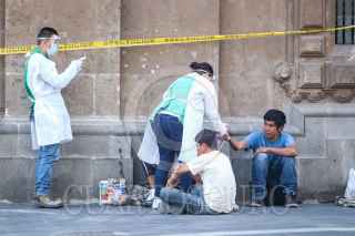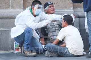 CIUDAD DE MÉXICO, 22ABRIL2020.- Trabajadores del gobierno de la Ciudad de México otorgaron gel antibacterial y tomaron la temperatura a personas en situación de calle en el primer cuadro de la ciudad. Esto de cara a haber sido declara la Fase 3 de contingencia por Covid-19 FOTO: GALO CAÑAS /CUARTOSCURO.COM
